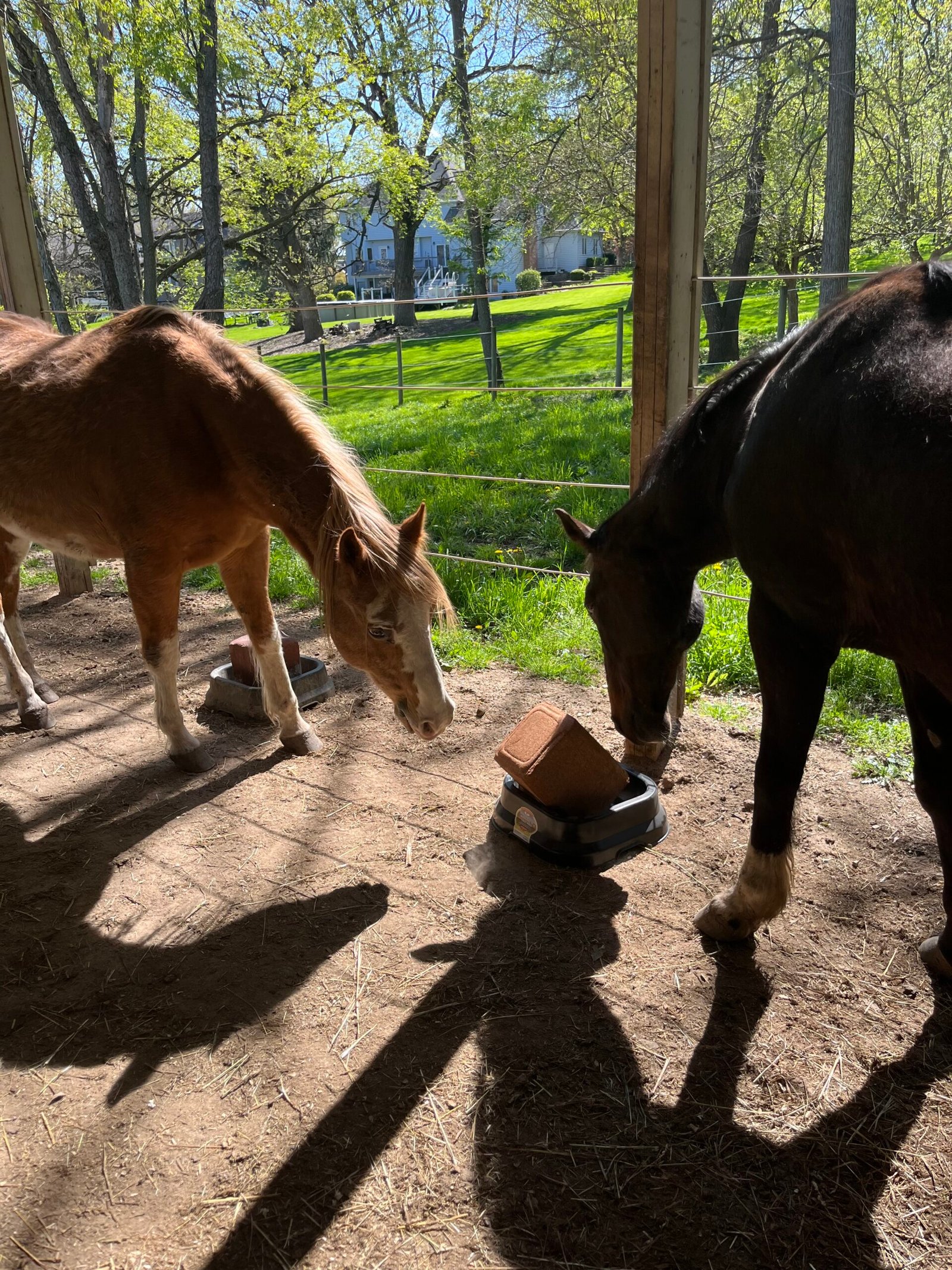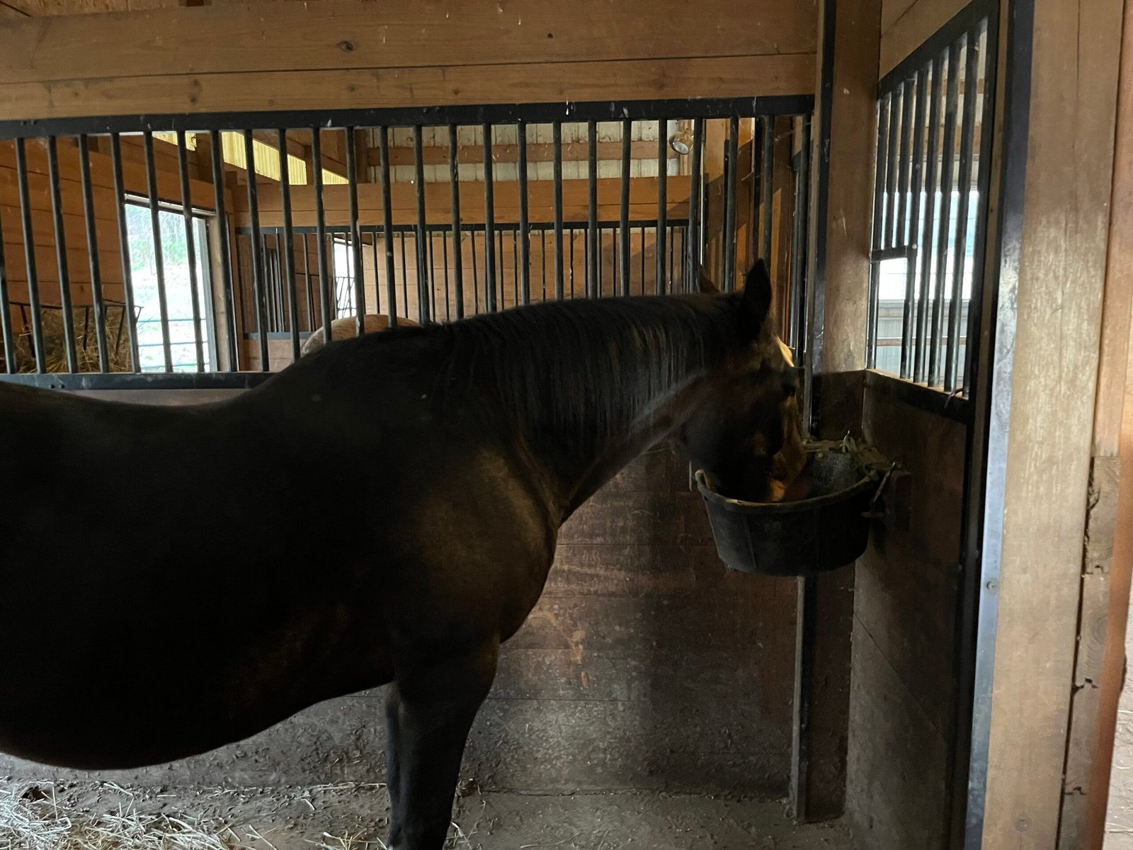 We are a small, private barn offering personalized care. Ideal for leisure riders or retired/senior horses. Full board includes grain twice daily and unlimited access to fresh water and hay. We have installed hay huts in each of the pastures and each pasture has a shelter available. The horses enjoy long turnouts in green grass pastures for peaceful days of grazing. Stalls are cleaned daily. There is a heated tack room available for storage, as well as shower stall access.